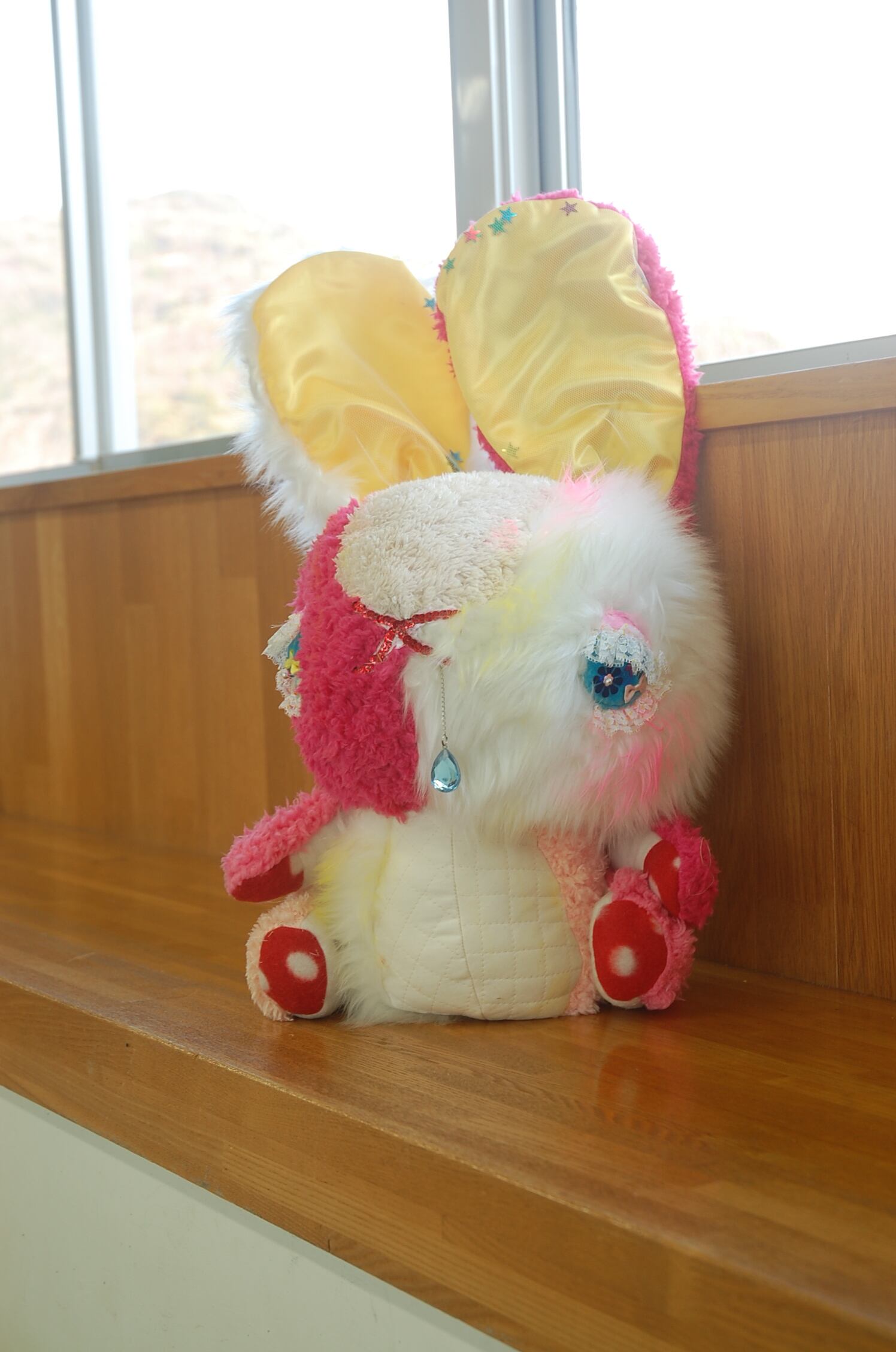 Materials: Cotton, 100% polyester quilting and fur cloth, fake crystals, etc.